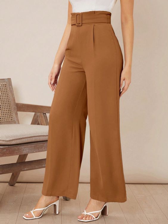 Calças de Pernas Largas Sólidas, complementadas por um elegante cinto que acentua a cintura. Essas calças foram projetadas para a mulher moderna que valoriza a versatilidade, oferecendo um toque contemporâneo a qualquer guarda-roupa.