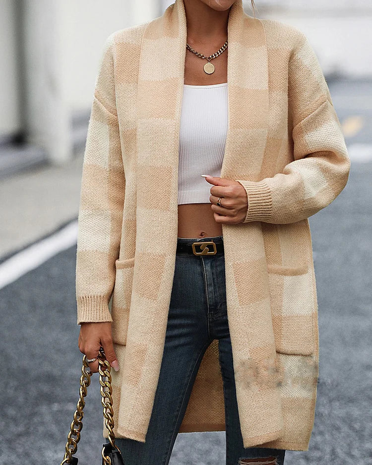 As malhas cuidadosamente entrelaçadas garantem conforto e calor, tornando este cardigã a escolha perfeita para dias mais frescos. O padrão xadrez colorido adiciona um toque de ousadia, permitindo que você expresse sua individualidade com confiança.