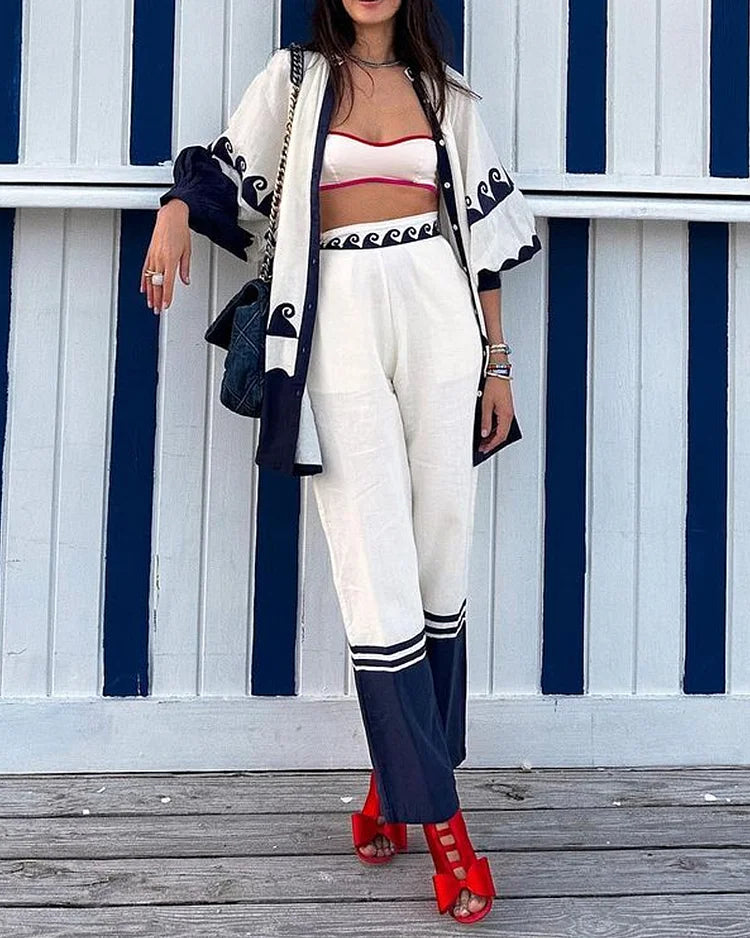 Conjunto Casual Estampado Solto de Duas Peças, uma fusão perfeita entre moda descontraída e elegância. Este conjunto é uma escolha versátil para aqueles que buscam conforto sem sacrificar o estilo.