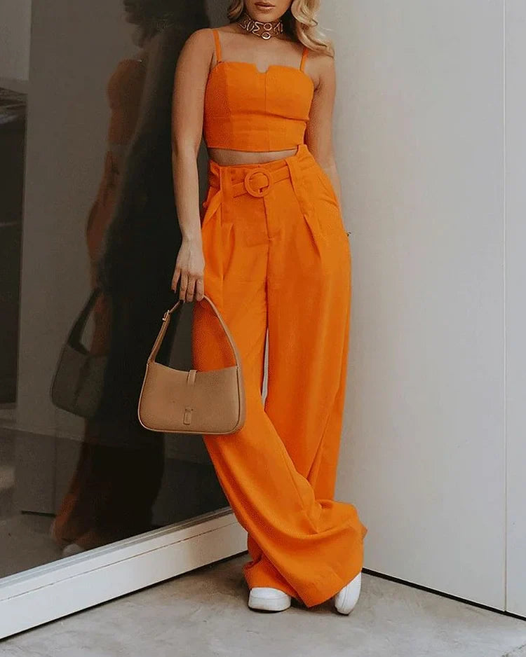 Conjunto de Duas Peças em Cor Sólida Laranja, uma escolha vibrante e cheia de estilo para iluminar o seu guarda-roupa. Este conjunto é perfeito para mulheres que buscam uma opção ousada e contemporânea.