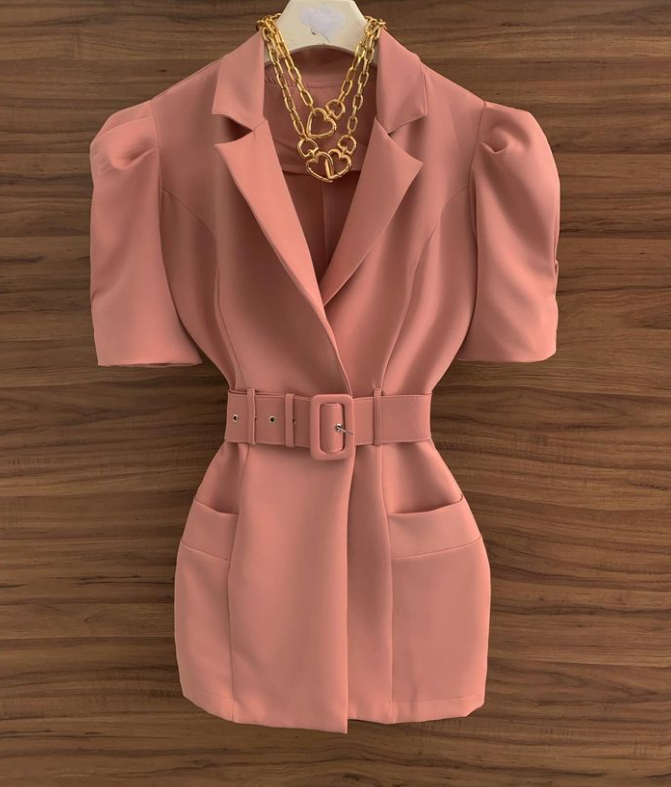 O design sofisticado apresenta um corte de alfaiataria que valoriza a silhueta feminina, enquanto o blazer integrado confere um toque de formalidade, perfeito para ocasiões especiais ou para criar looks de trabalho refinados. O cinto ajustável na cintura adiciona um toque de charme e permite personalizar o ajuste de acordo com suas preferências.