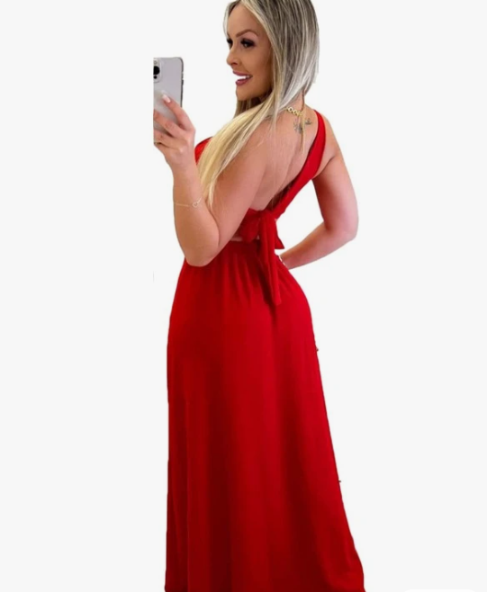 Celebre o Natal com elegância e glamour usando o nosso Vestido Longo Feminino Festa, um verdadeiro encanto para as ocasiões festivas. Com um design soltinho e moderno, este vestido é a escolha perfeita para expressar sua feminilidade de maneira sofisticada.