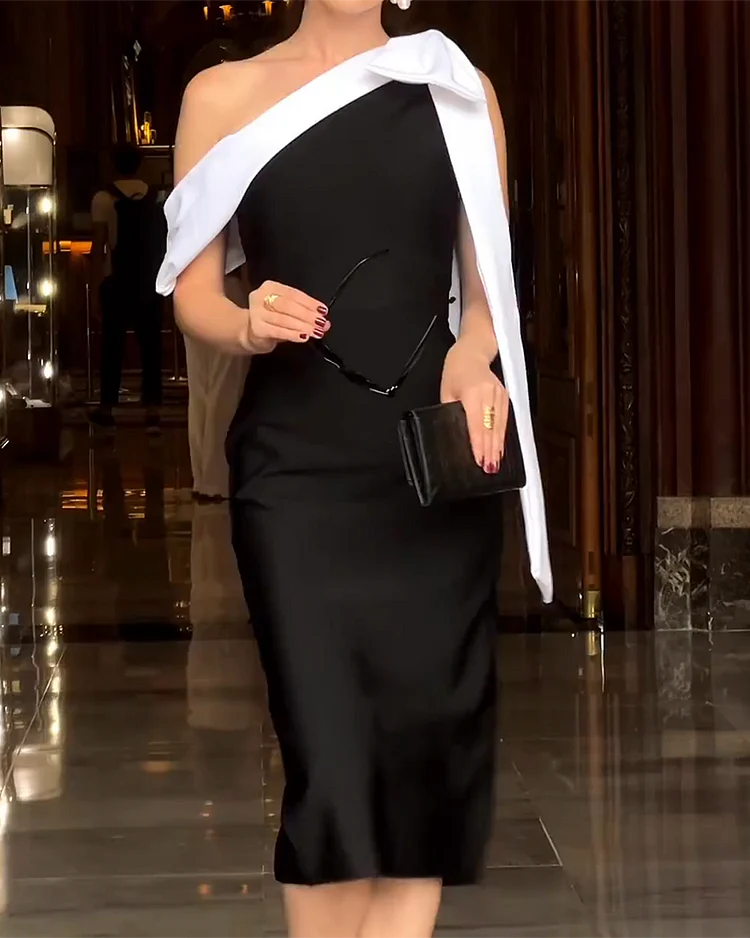 Nome do produto: Vestido Patchwork com alça de ombro único